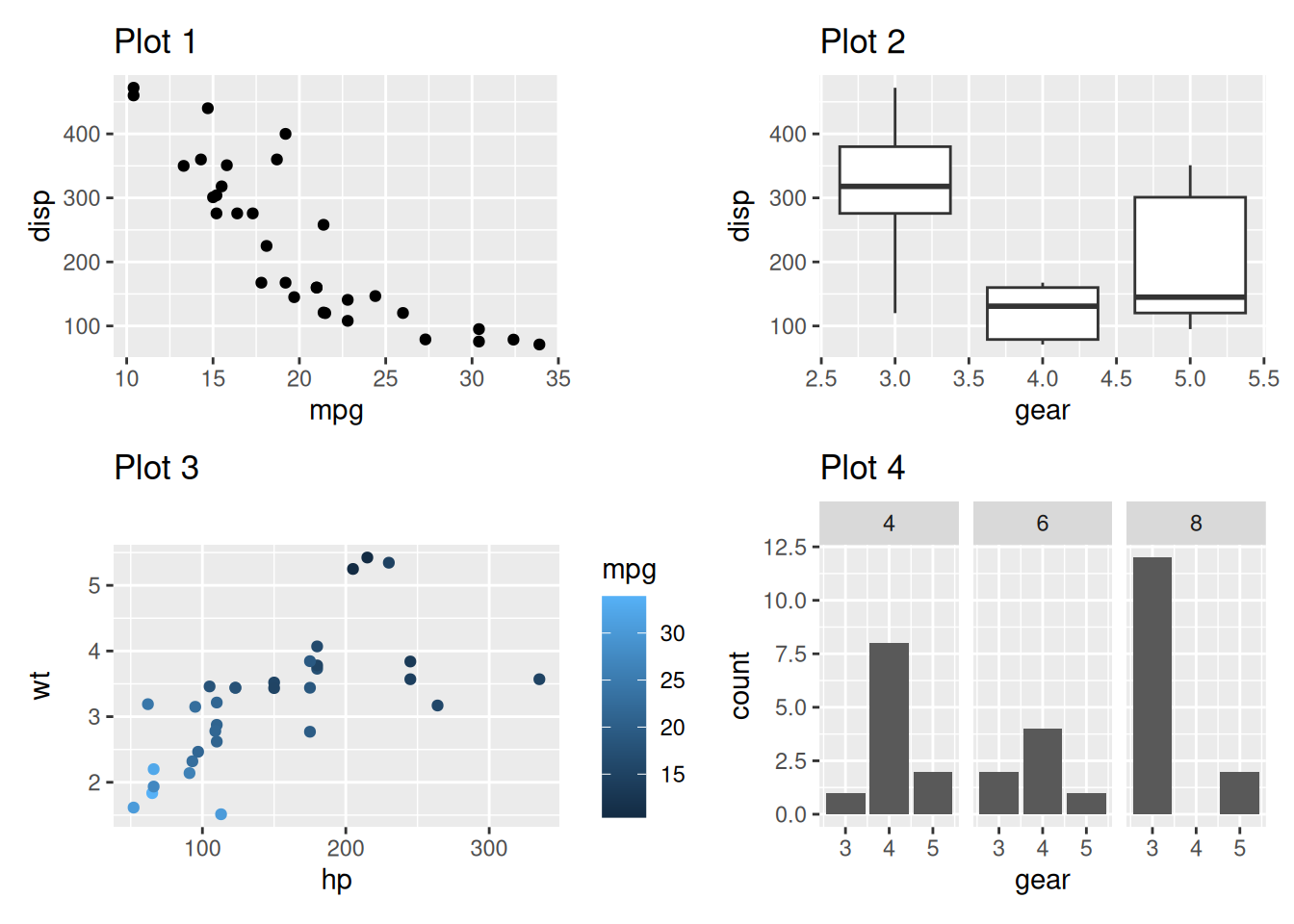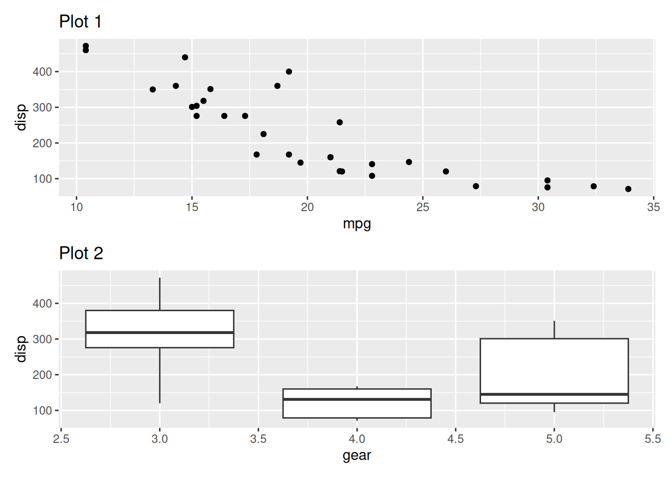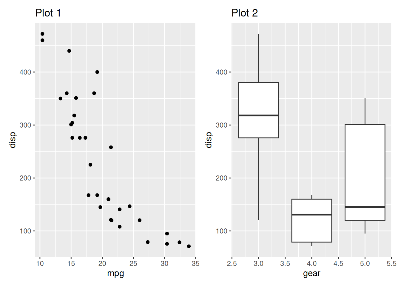The package patchwork (Pedersen (2025)) makes combining ggplots possible.